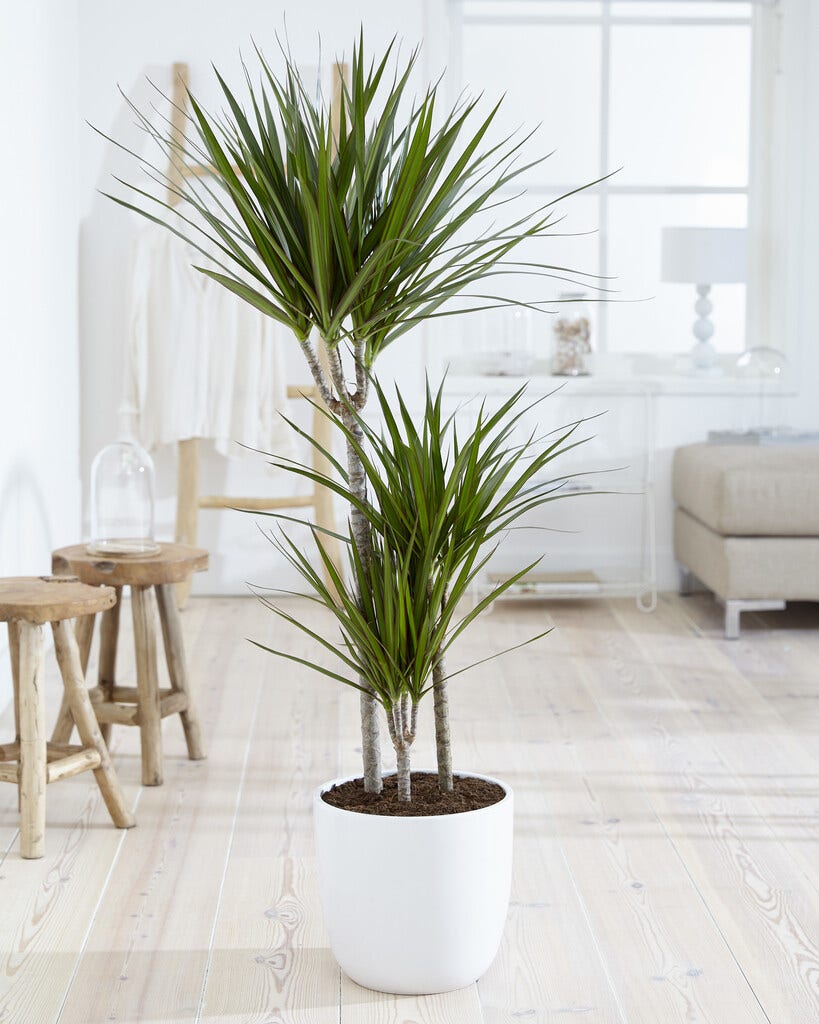 Yucca’s zijn ijzersterke kamerplanten. Ze zijn heel vergevingsgezind en kunnen lang zonder water. Yucca is vooral geschikt voor een lichte plek in huis. Fel zonlicht is geen probleem! Yucca groeit met stevige (en na verloop van tijd dikke) stammen, met daarop het stevige en puntige blad. Niet alleen is een palmlelie heel makkelijk, maar ook nog eens heel mooi!