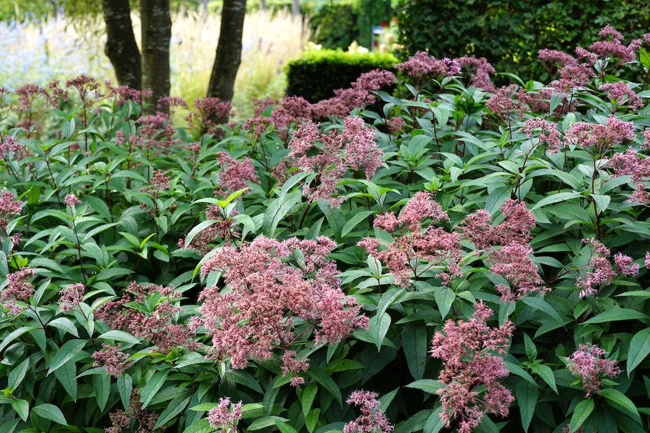 Wat opvalt aan de voorbeeldtuinen, is dat bepaalde planten vaak gebruikt zijn. Dat is natuurlijk ook een beetje inherent aan dit seizoen. Asters, zonnehoed en duizendknoop mogen in het najaar natuurlijk niet ontbreken. Siergrassen als prachtriet (Miscanthus), vingergras (Panicum) en lampenpoetsergras (Pennisetum) zijn onmisbaar in deze periode. Maar ook prachtige planten als zilverkaars (Actaea), schildblad (Darmera peltata), mammoetblad (Gunnera) en bamboe (Phyllostachys) zijn in veel tuinen terug te zien.